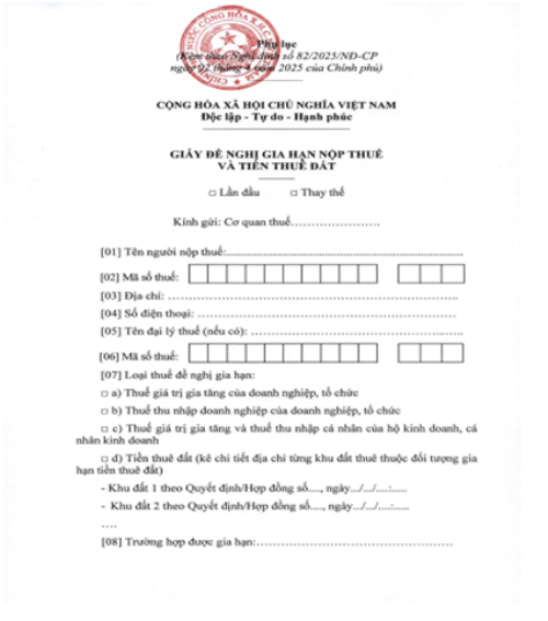 Hướng dẫn khai thông tin giấy đề nghị gia hạn nộp thuế và tiền thuê đất năm 2025