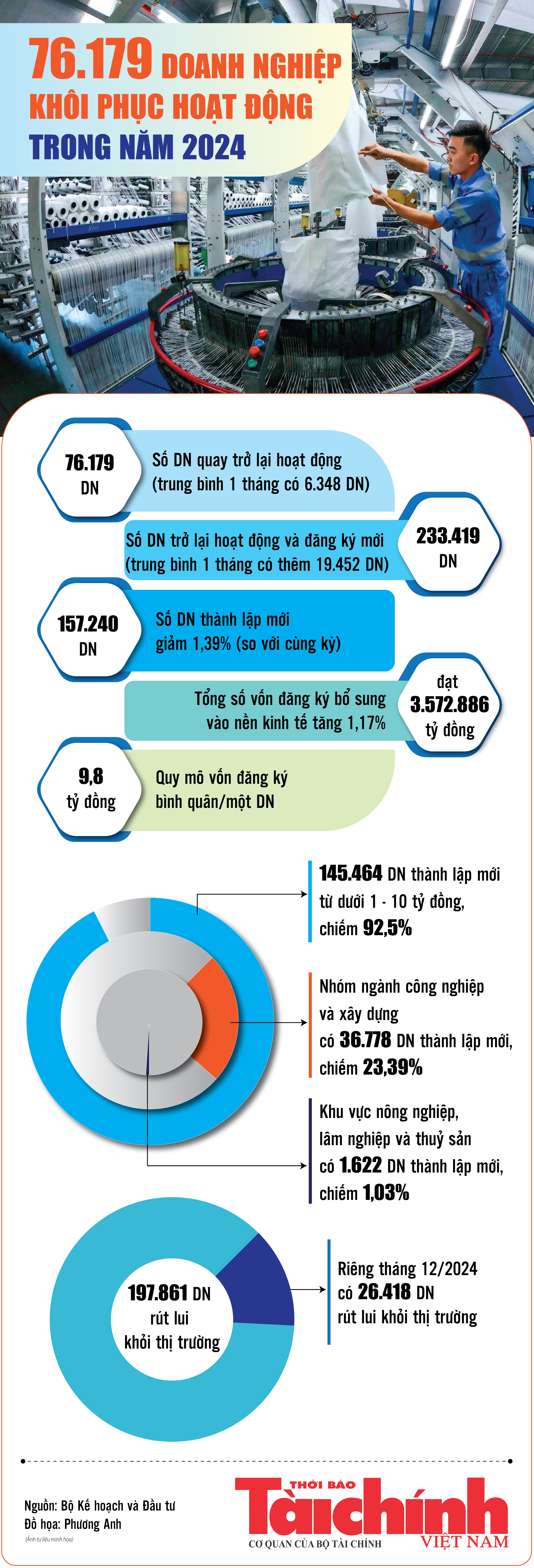 Infographics: 233.419 doanh nghiệp thành lập mới và quay trở lại hoạt động trong năm 2024