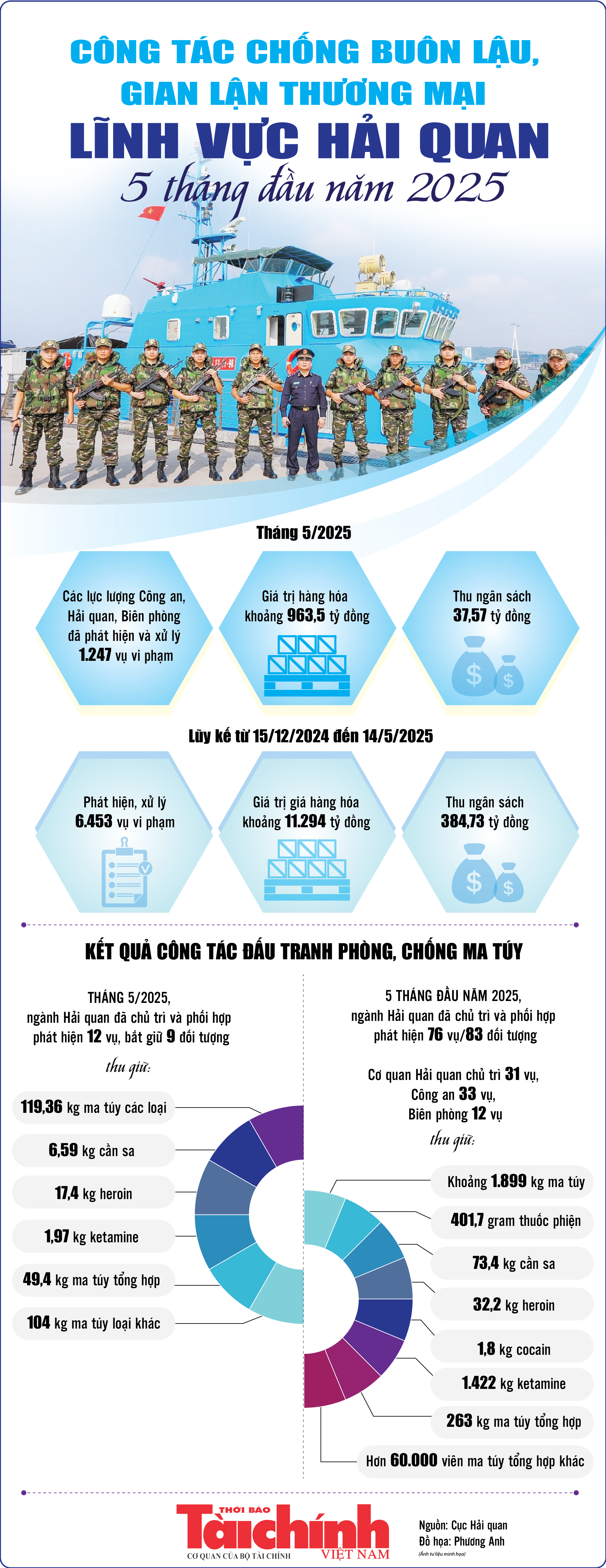 Infographics: 6.453 vụ vi phạm pháp luật hải quan trong 5 tháng đầu năm 2025
