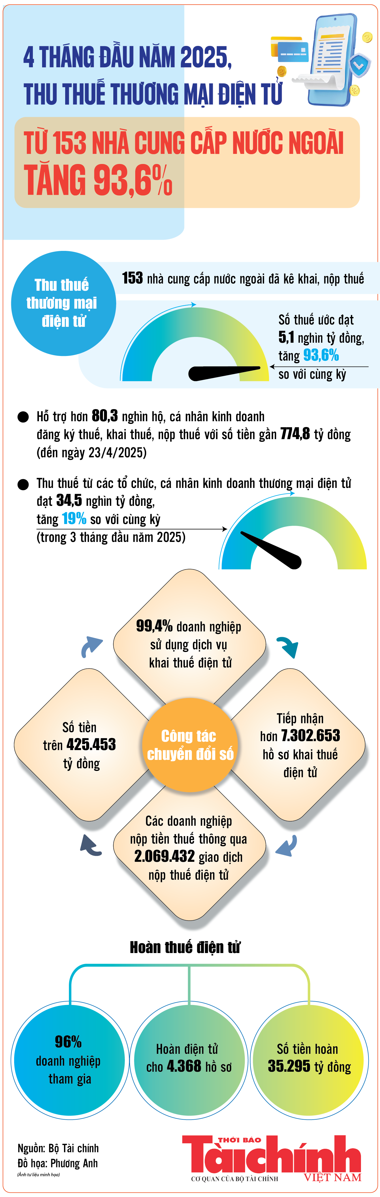 Infographics: Các nhà cung cấp nước ngoài đã nộp 5.100 tỷ đồng tiền thuế trong 4 tháng đầu năm 2025