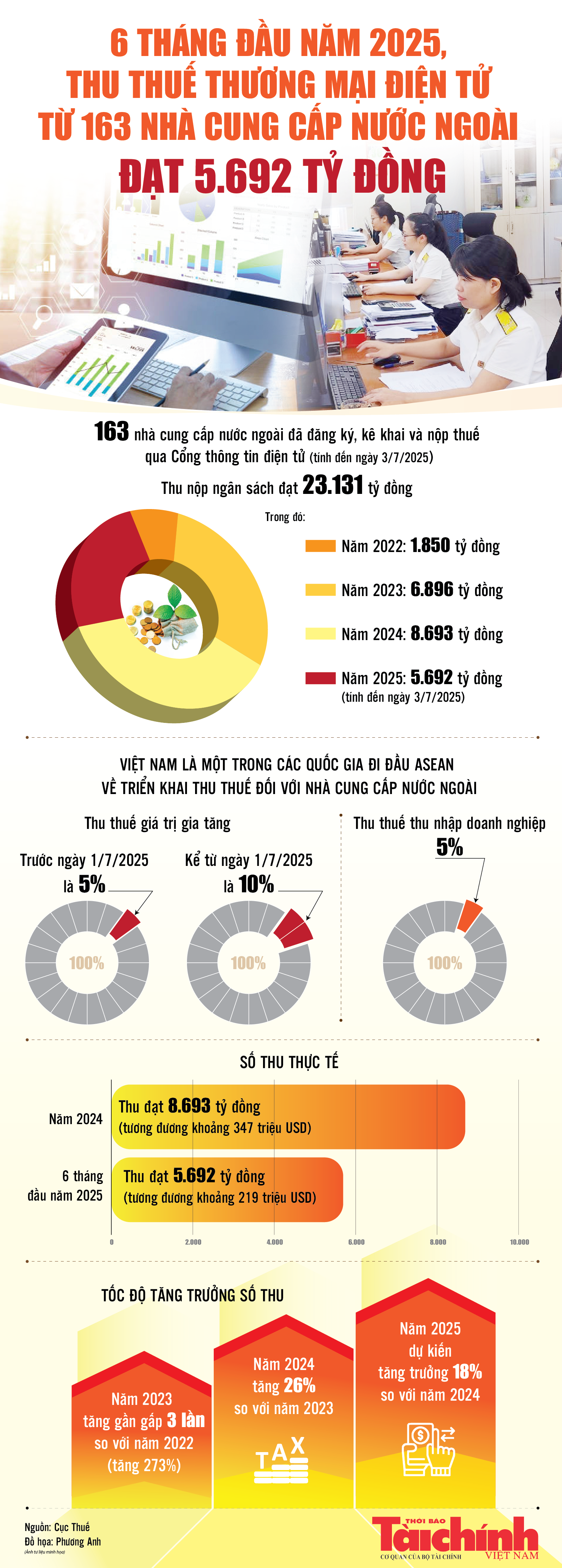 Infographics: Các nhà cung cấp nước ngoài đã nộp 5.692 tỷ đồng tiền thuế trong 6 tháng đầu năm 2025