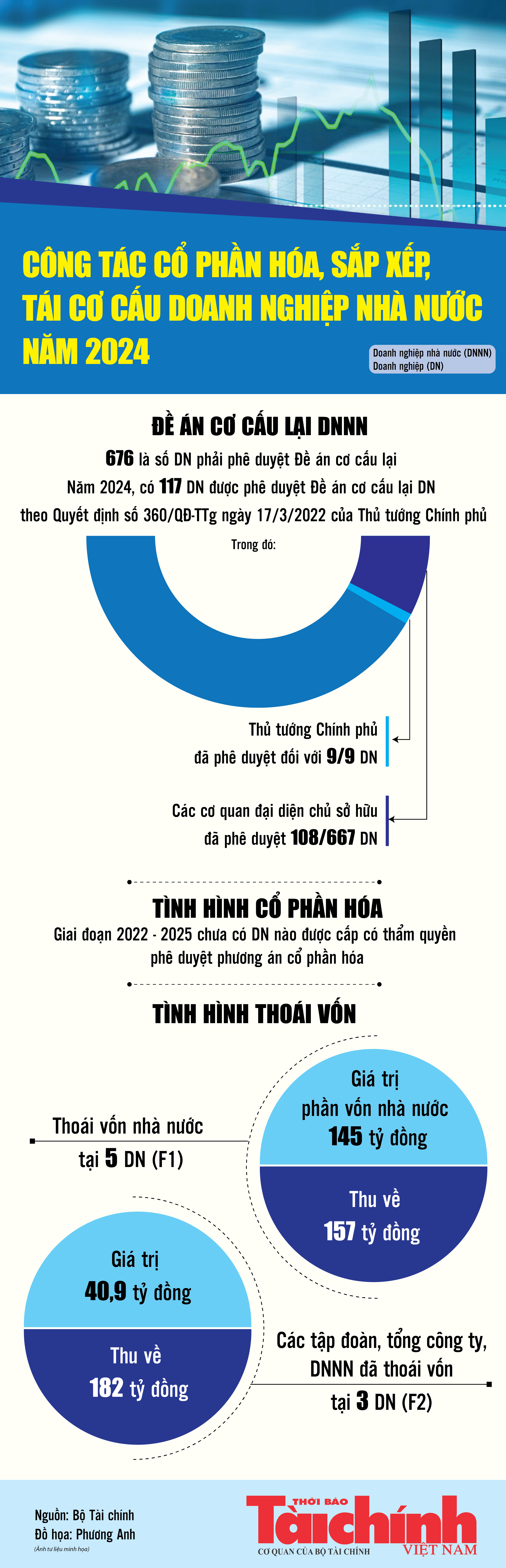 Infographics: Công tác cổ phần hóa, sắp xếp, tái cơ cấu doanh nghiệp nhà nước năm 2024