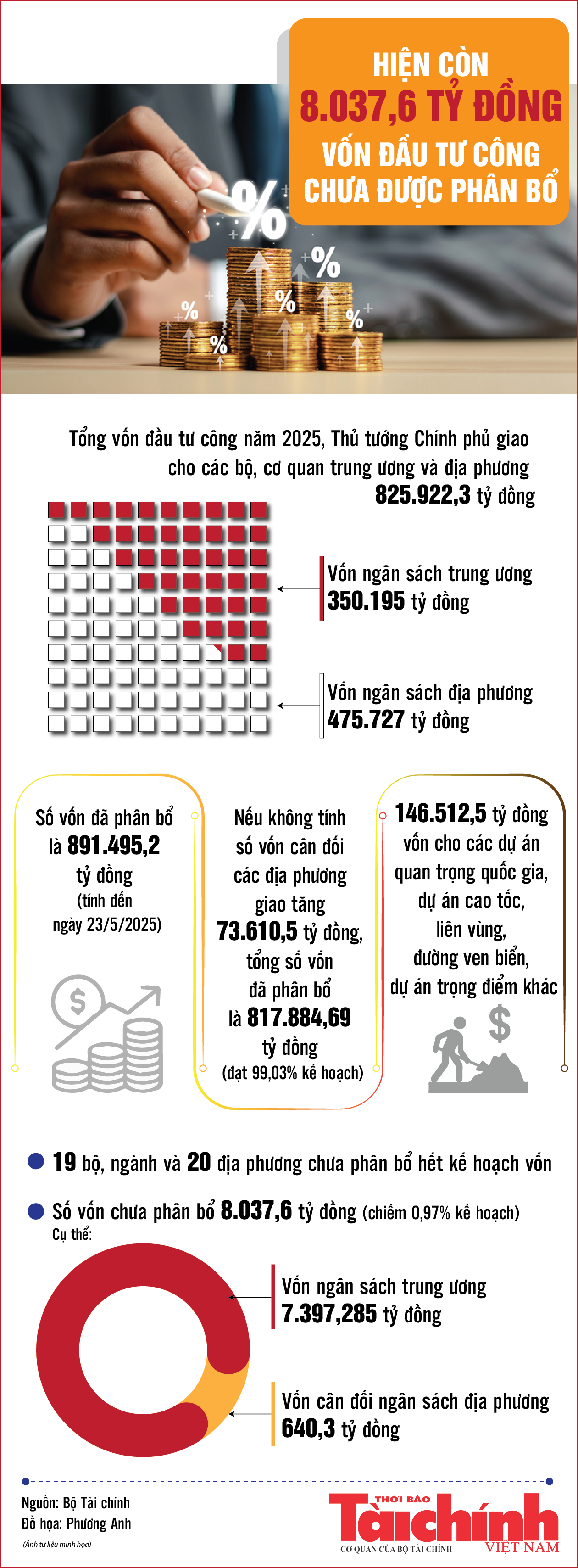 Infographics: Hiện còn 8.037,6 tỷ đồng vốn đầu tư công chưa được phân bổ chi tiết