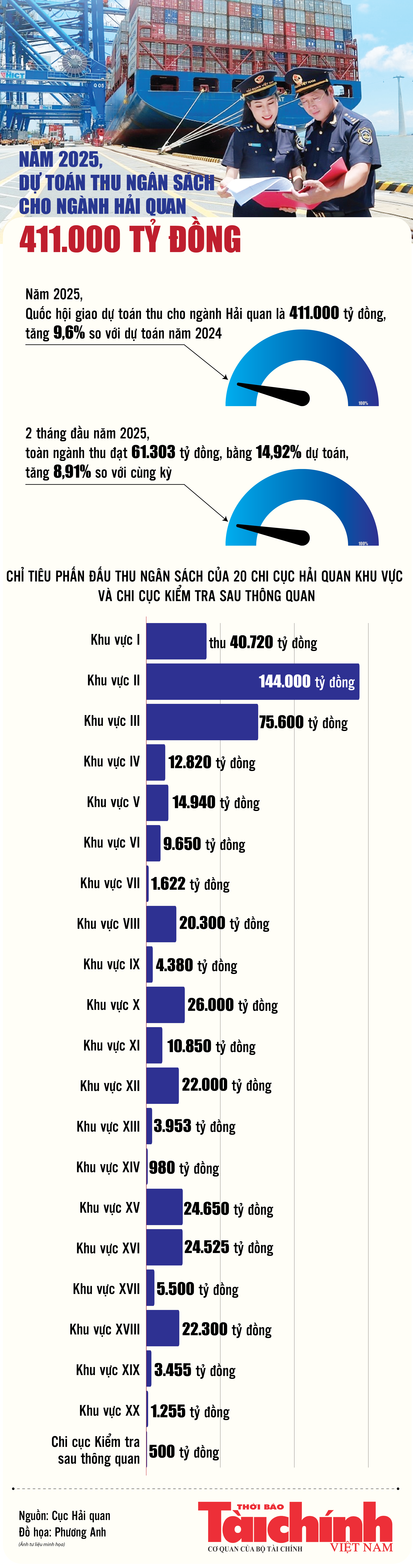 Infographics: Năm 2025, dự toán thu ngân sách cho ngành Hải quan 411.000 tỷ đồng