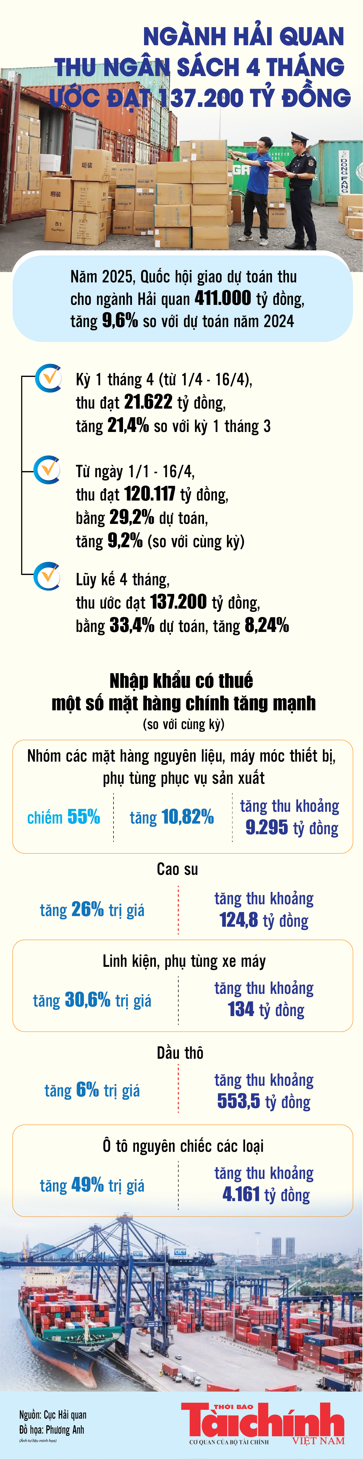 Infographics: Ngành Hải quan thu ngân sách 4 tháng ước đạt 137.200 tỷ đồng
