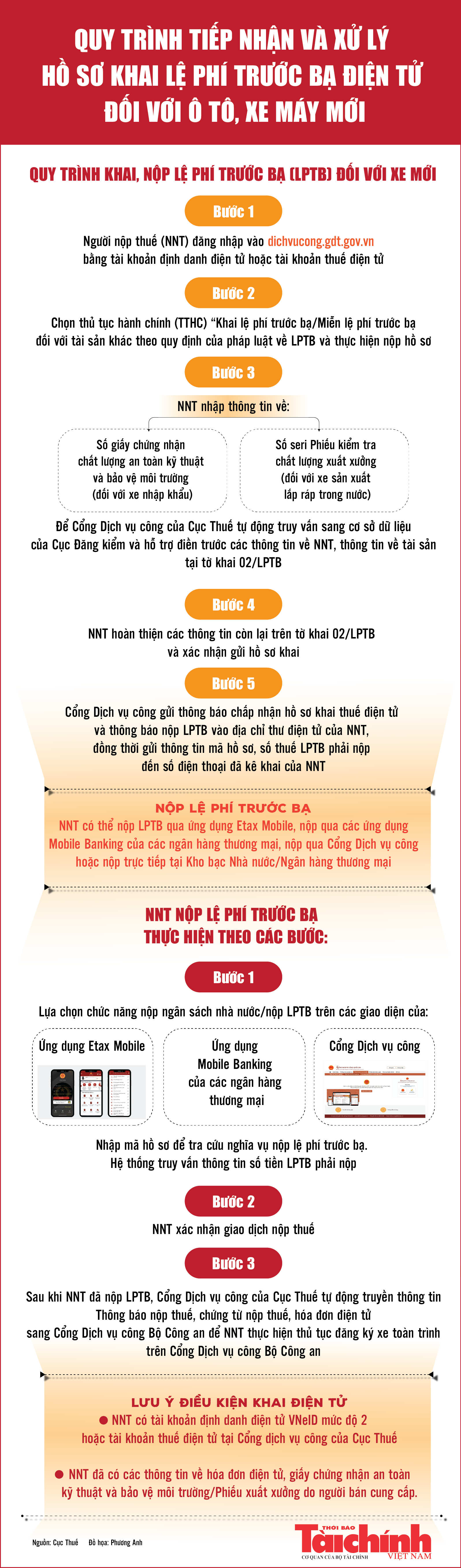 Infographics: Quy trình kê khai lệ phí trước bạ điện tử đối với ô tô, xe máy mới