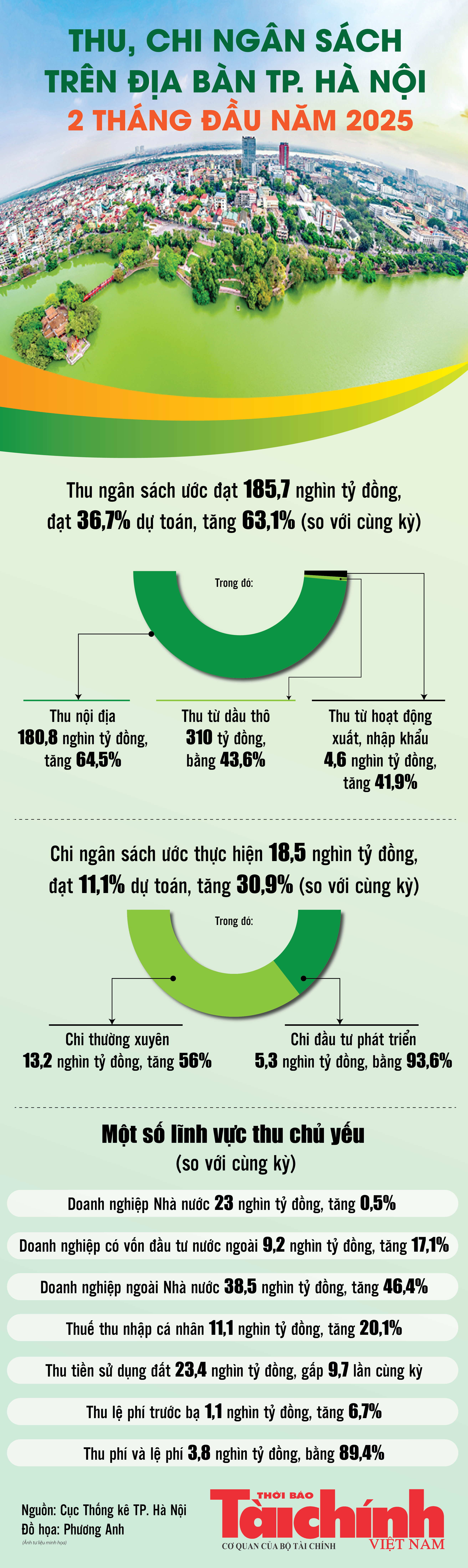 Infographics: Thu, chi ngân sách trên địa bàn TP. Hà Nội 2 tháng đầu năm 2025