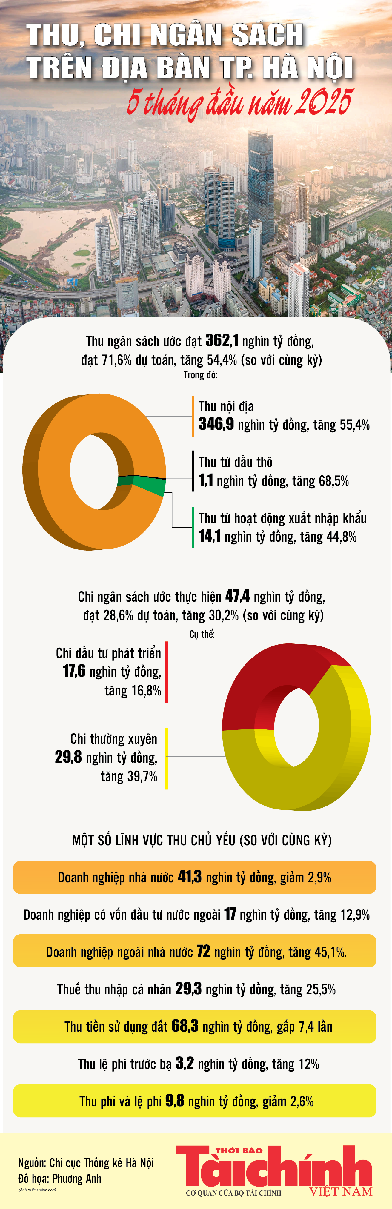 Infographics: Thu, chi ngân sách trên địa bàn TP. Hà Nội 5 tháng đầu năm 2025