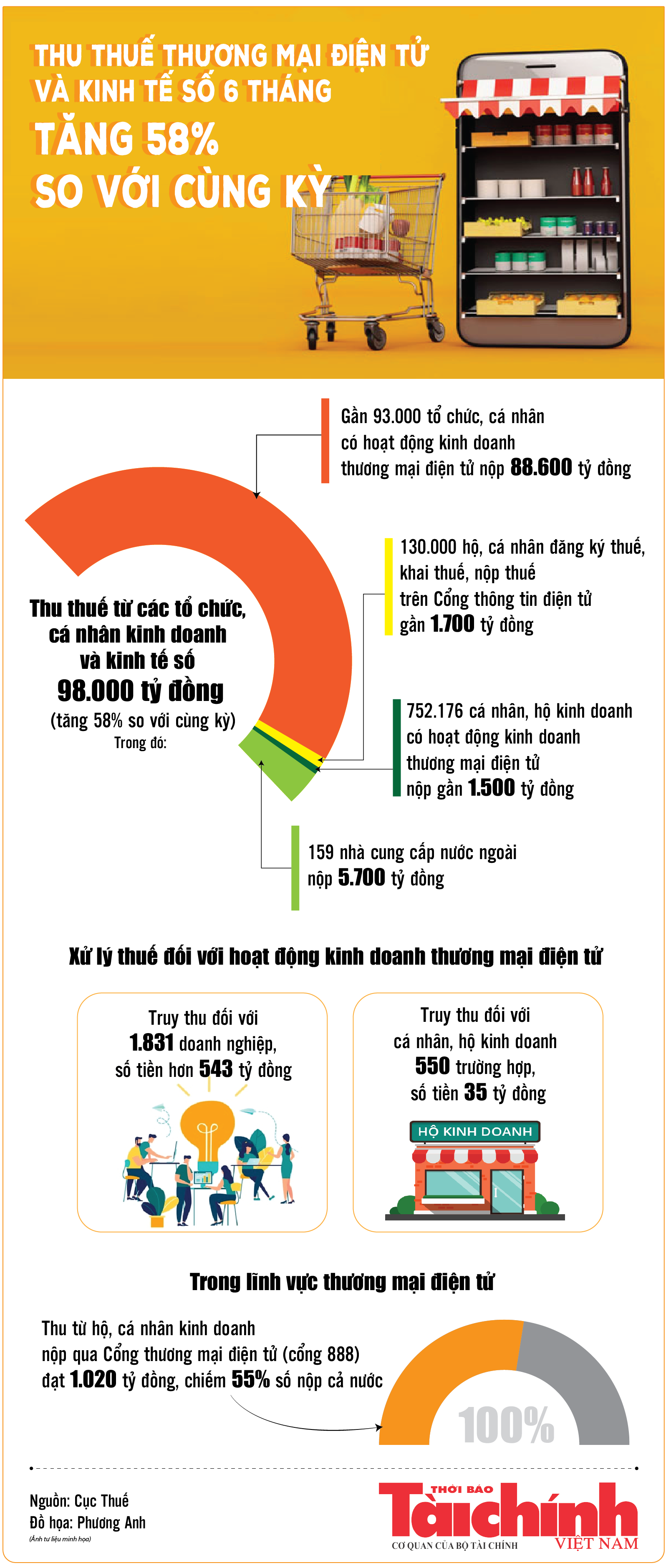 Infographics: Thu thuế thương mại điện tử và kinh tế số 6 tháng đạt 98.000 tỷ đồng