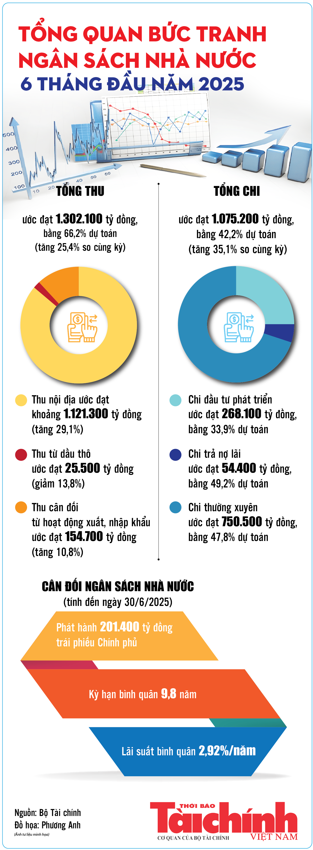 Infographics: Tổng quan bức tranh ngân sách nhà nước 6 tháng đầu năm 2025