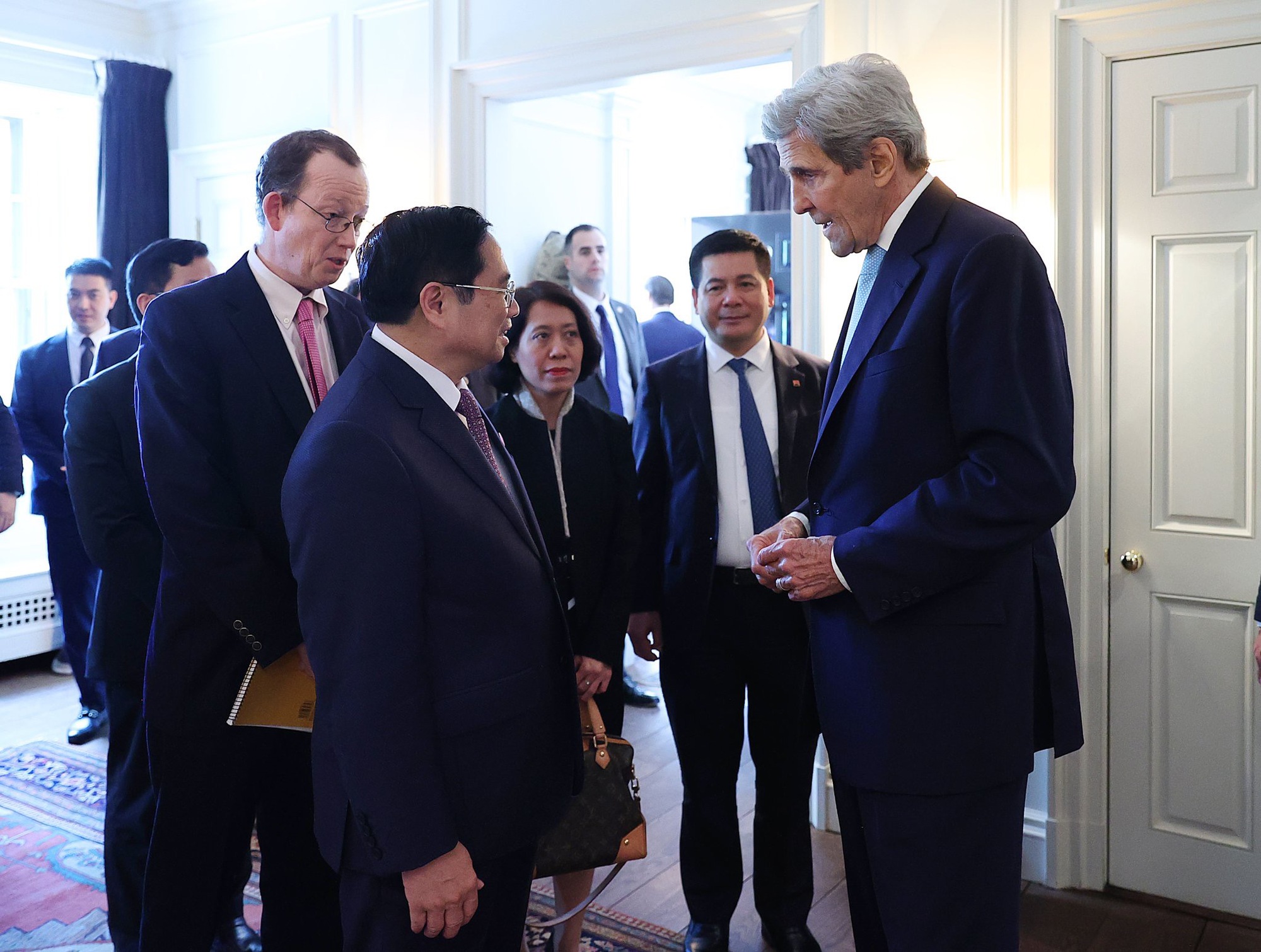 Đặc phái viên John Kerry bày tỏ vui mừng được gặp Thủ tướng Phạm Minh Chính và cảm ơn Chính phủ Việt Nam về sự đón tiếp trọng thị mỗi lần ông Kerry thăm Việt Nam những năm qua.