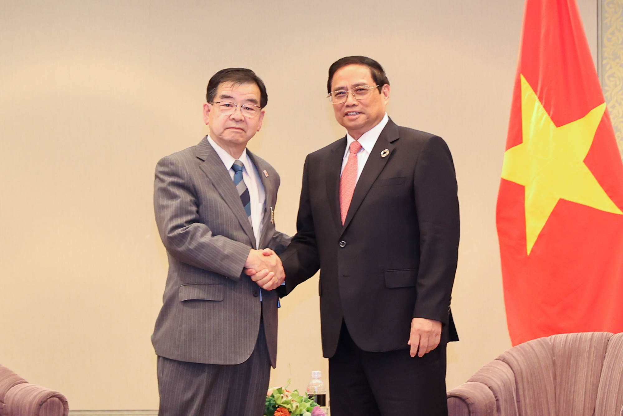 | Thủ tướng Phạm Minh Chính và Phó Chủ tịch Hội Hòa bình Hữu nghị Hiroshima – Việt Nam Akagi Tatsuo |