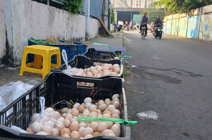Những ngày qua, trên vỉa hè đường Lê Đức Thọ (Gò Vấp, TP. Hồ Chí Minh), nhiều tiểu thương liên tục rao bán những sọt trứng gà với giá khá rẻ, trong đó loại lớn 2.000 đồng, nhỏ 1.800 đồng/quả. Theo người bán hàng ở đây cho biết, với giá bán như vậy họ lãi khoảng 300 - 400 đồng/quả.